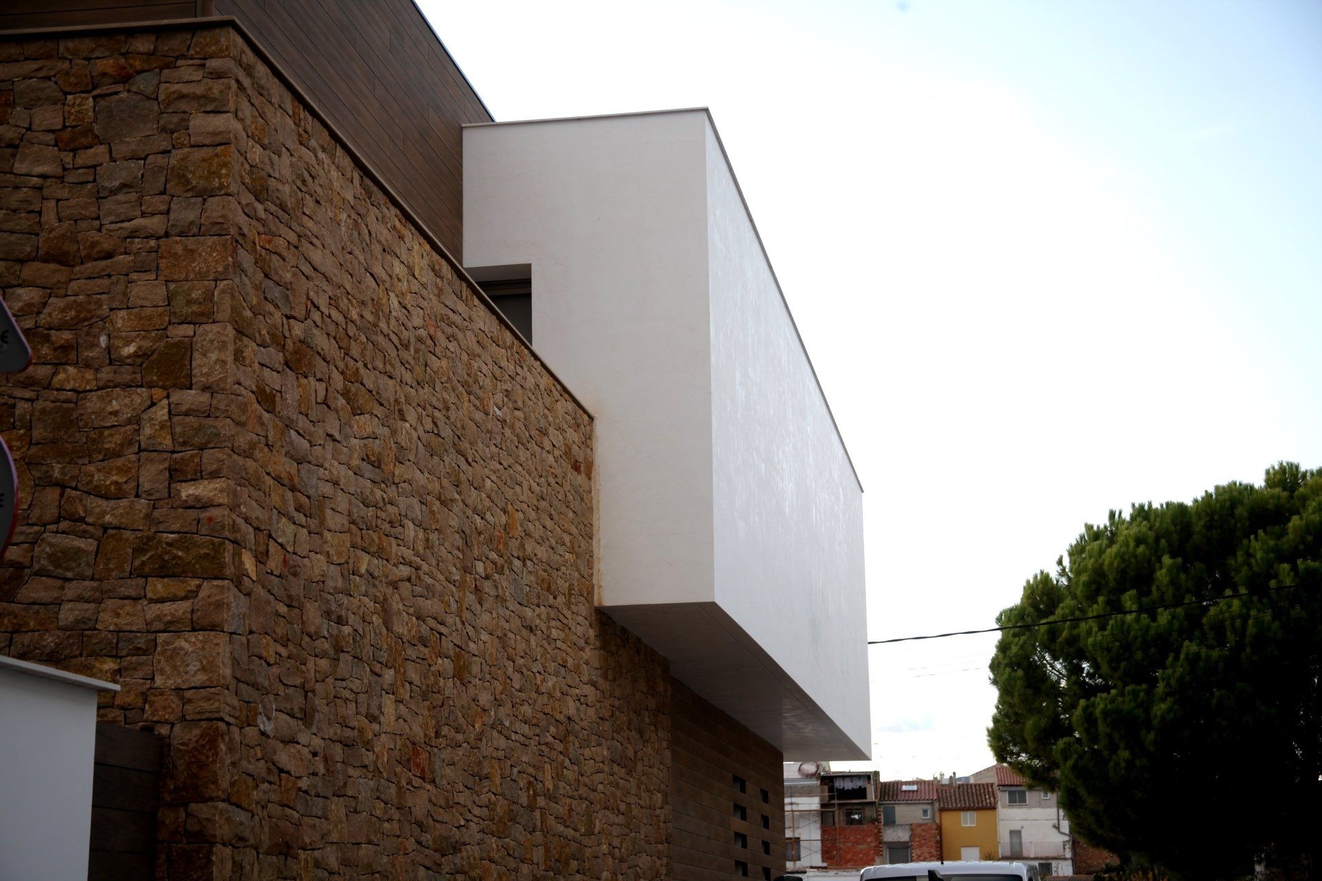 La situación de la parcela dentro de la trama urbana y un continuo juego de contrastes durante todo el proceso de creación determino la idea final del proyecto. El resultado es una vivienda de una gran contundencia volumétrica donde se contrastan la pureza del blanco con la naturalidad de la piedra y la madera.