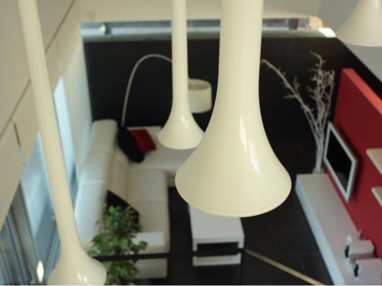 La pieza principal es el Salón a doble altura en el que destaca la escalera volada que a modo de escultura conecta verticalmente el espacio.